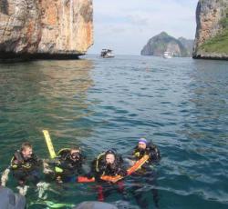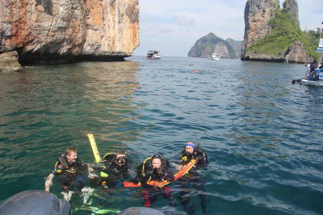 Первые пробные погружения все новички начинают отрабатывать в бассейне, а уже первые погружения в море проходят возле островов Пхи-Пхи и Рача-Яи. В дневное время группа начинающих дайверов под руководством инструктора занимается выполнением программы. В нее обычно включаются несколько погружений и в обязательном порядке обед на корабле. Кроме того, в стоимость обучения включены – трансфер, оборудование, страховка и питьевая вода. При желании участников могут устраиваться и ночные погружения.
